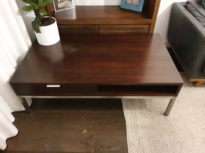 Freedom furniture 2 drawer coffee table solid timber some marks on top 700mm wide 1200mm long 330mm high, 1259255632
